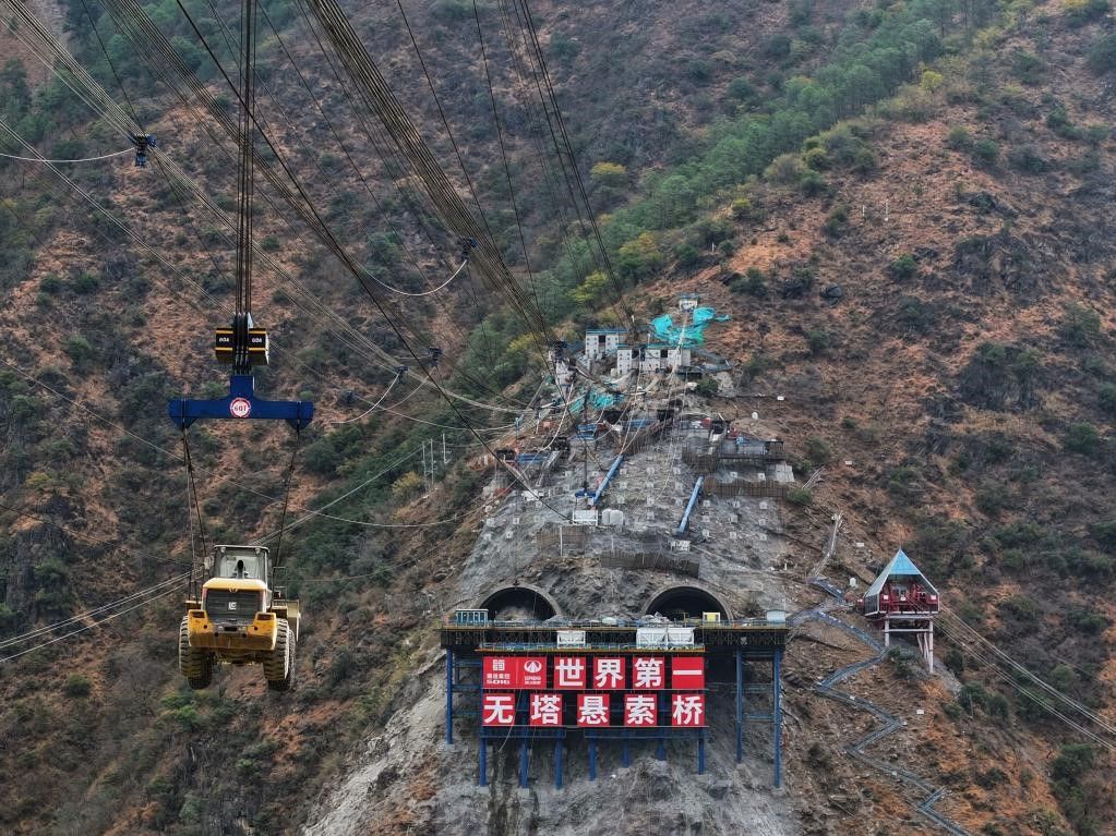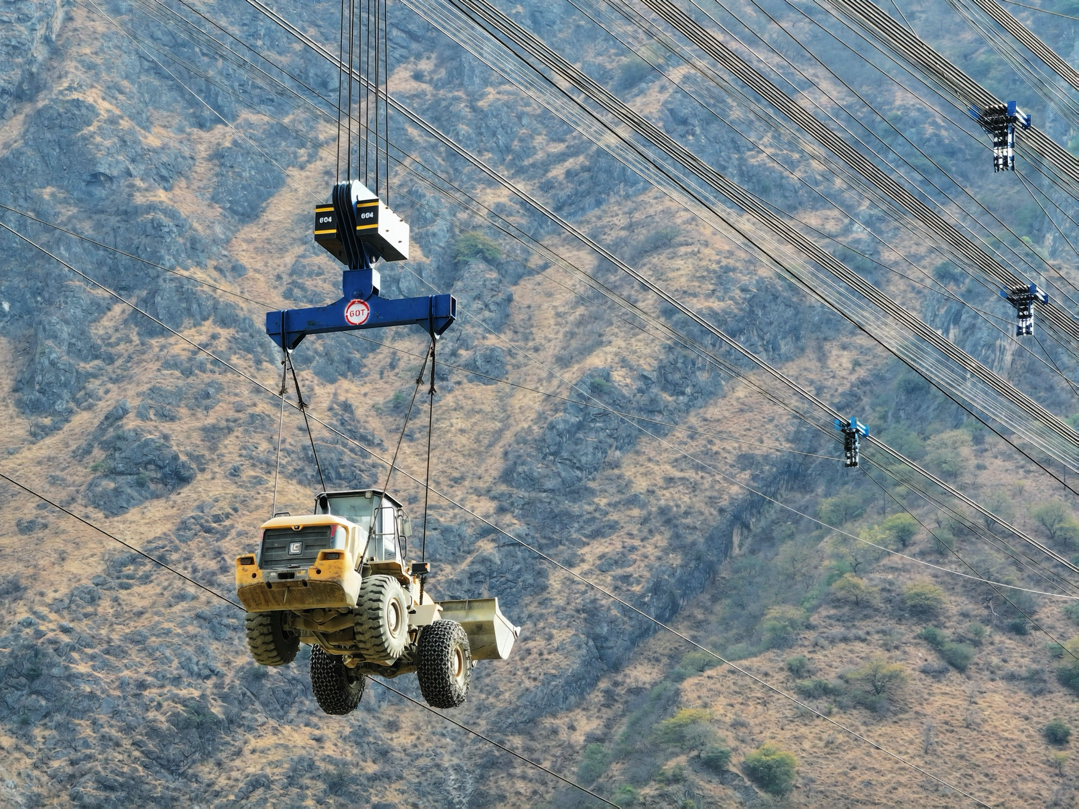15吨辅佐缆索吊——“建立骨架”。在暂时索道完结根底物料运送后,2套15吨辅佐缆索吊于2025年8月接力出场,中心使命是建立木里岸作业钢渠道、地道锚洞口操作架等要害设备,并承当中小型设备转运、施工渣土短途运送等作业,为60吨主缆索吊体系装置和后续施工供给作业根底。
